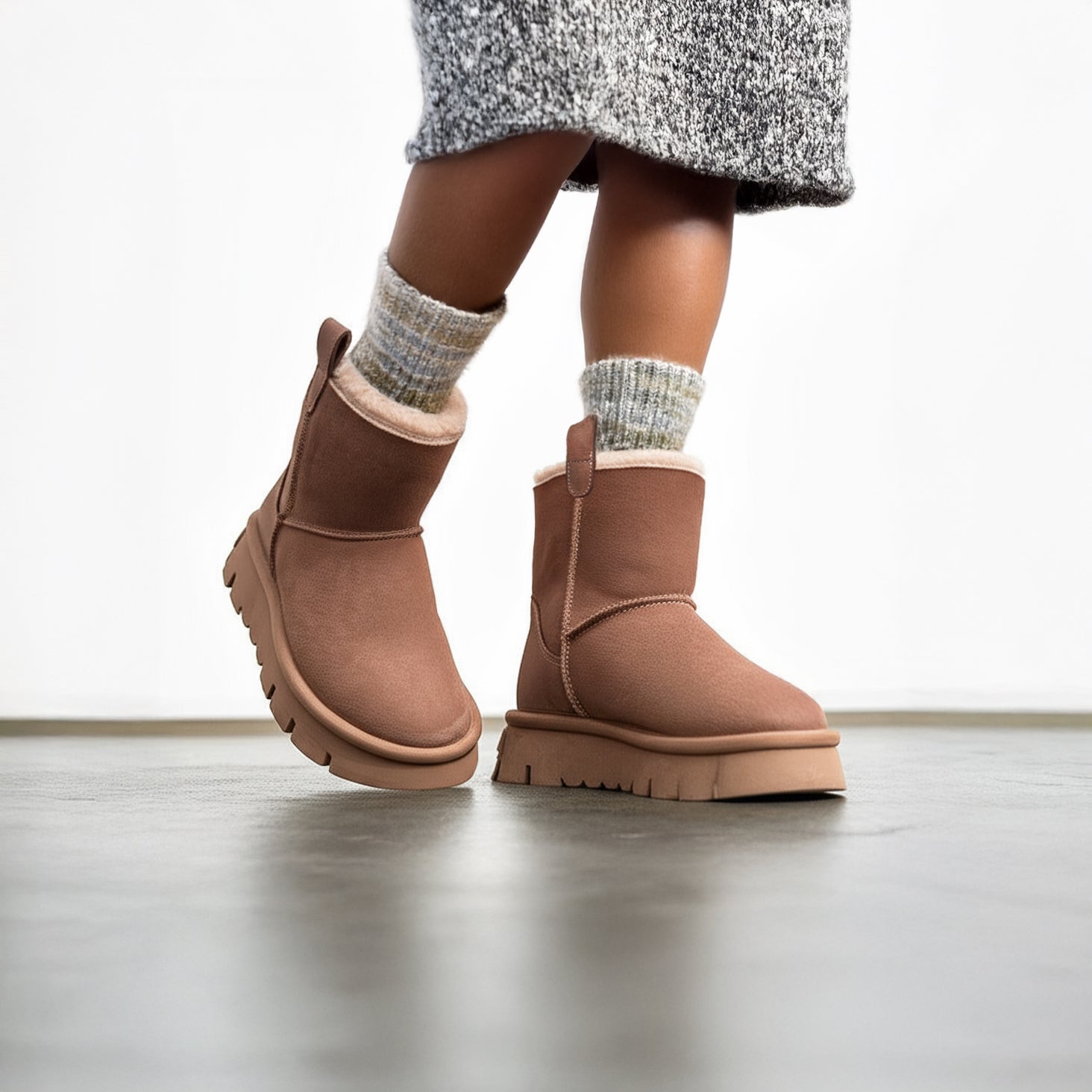 Effortless warmth meets refined simplicity. The Bolton in Sahara Suede reimagines the classic Chelsea boot with a luxurious shearling lining and a statement platform sole—delivering slip-on sophistication in a versatile neutral that complements everything in your winter wardrobe.