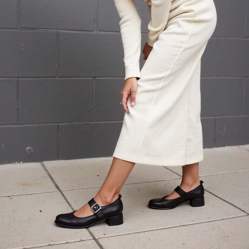 Elevate your style with these sophisticated black leather Mary Jane heels that seamlessly blend classic elegance with contemporary polish. Crafted from premium smooth black leather, these shoes feature the timeless Mary Jane silhouette refined with modern details and a comfortable block heel for effortless sophistication.