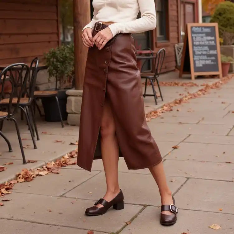 Embrace warm sophistication with these luxurious brown leather Mary Jane heels that beautifully blend vintage elegance with contemporary style. Crafted from premium smooth leather in a rich chocolate brown tone, these shoes feature the classic Mary Jane silhouette enhanced by a distinctive oversized circular buckle and a comfortable block heel for timeless appeal.