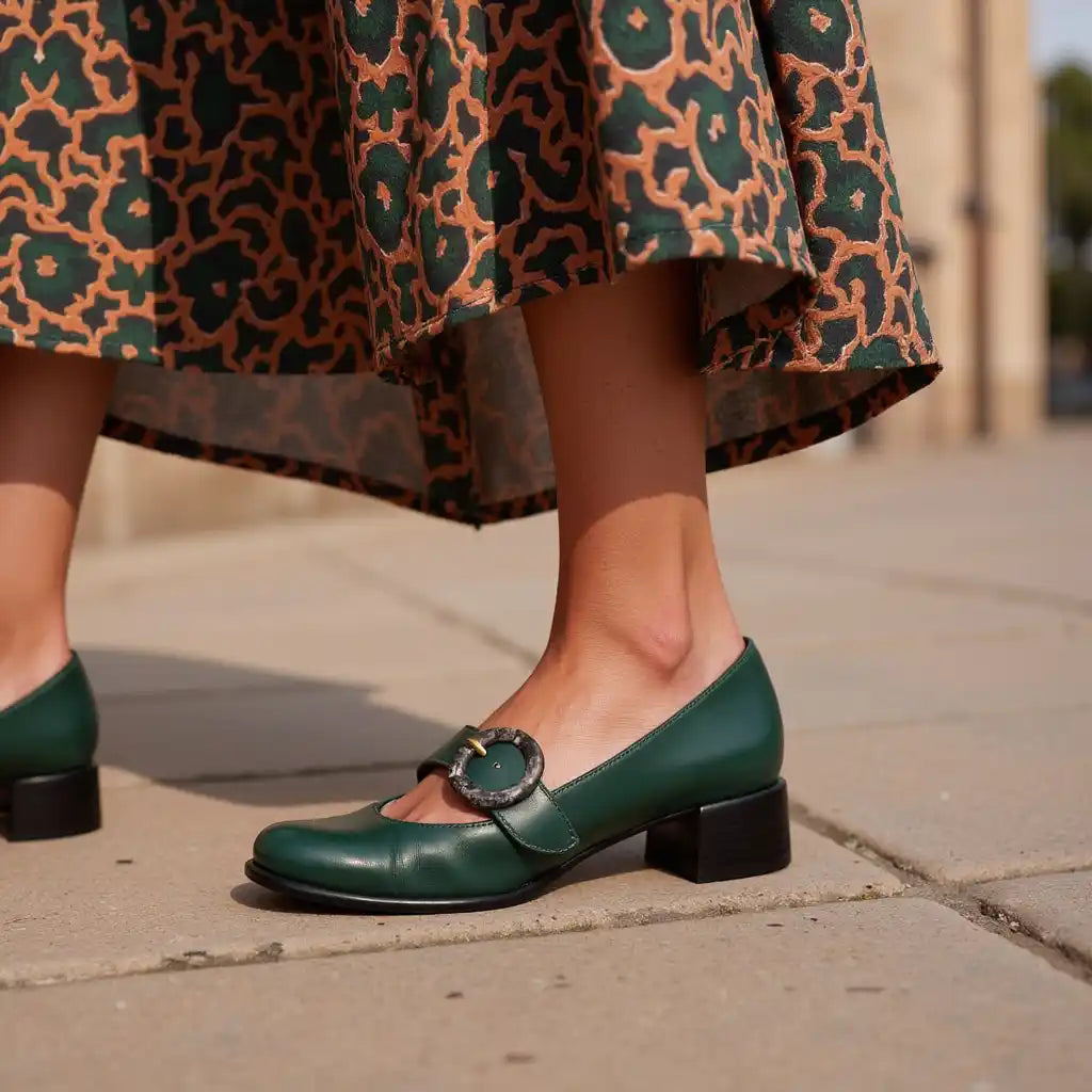 Make a bold statement with these captivating emerald green leather Mary Jane heels that perfectly balance vintage charm with contemporary sophistication. Crafted from premium smooth leather in a rich jewel-toned emerald green, these shoes feature the classic Mary Jane silhouette elevated by a distinctive oversized circular buckle and a comfortable block heel for striking elegance.
