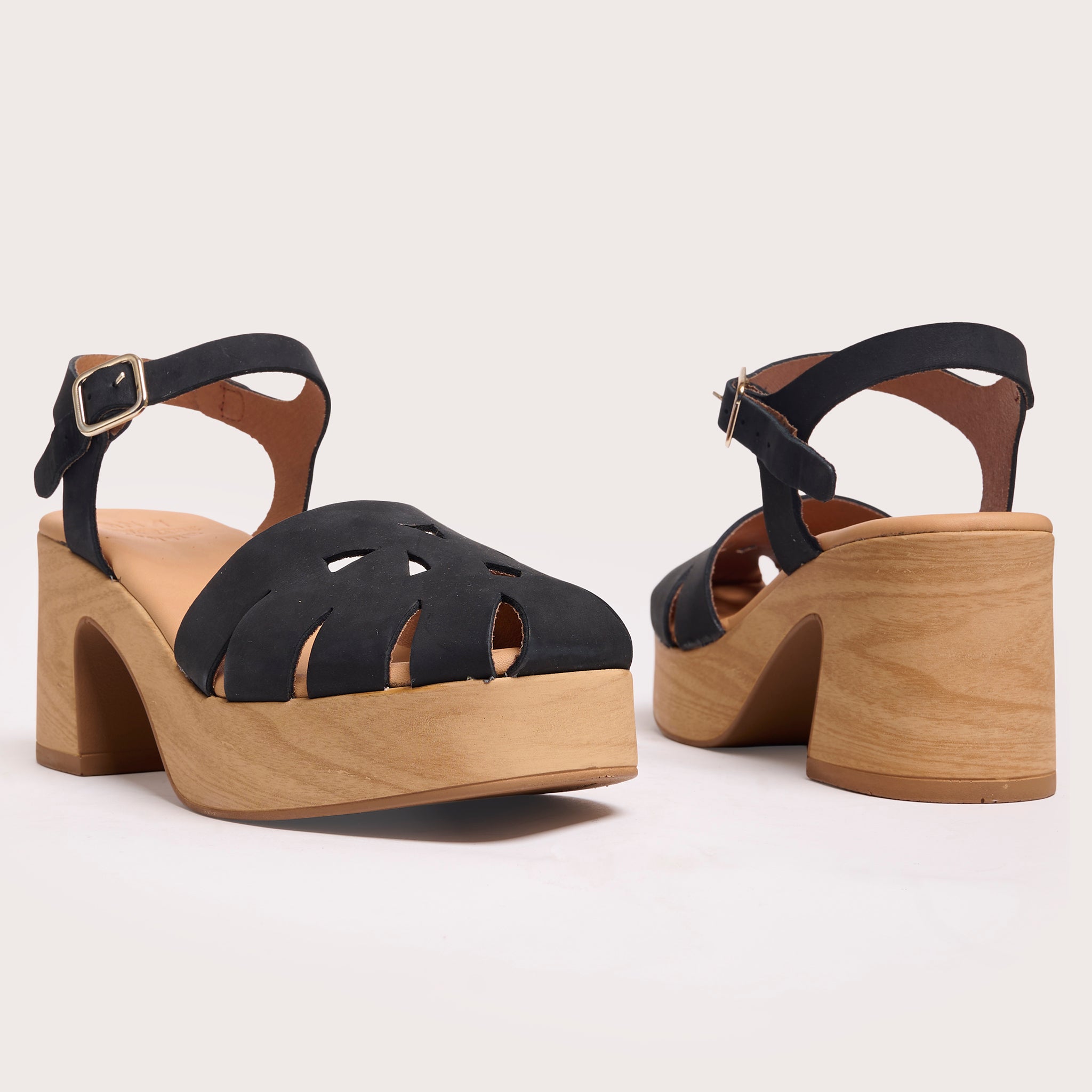 Rocker bottom platforms are back. Gaylord takes us back to when rocker bottoms and wide-bottom jeans were all the rage. Wear these with a floral sundress or flair jeans for the perfect Summer-of-Love vibe. Cutouts and adjustable straps ensure a groovy fit.
