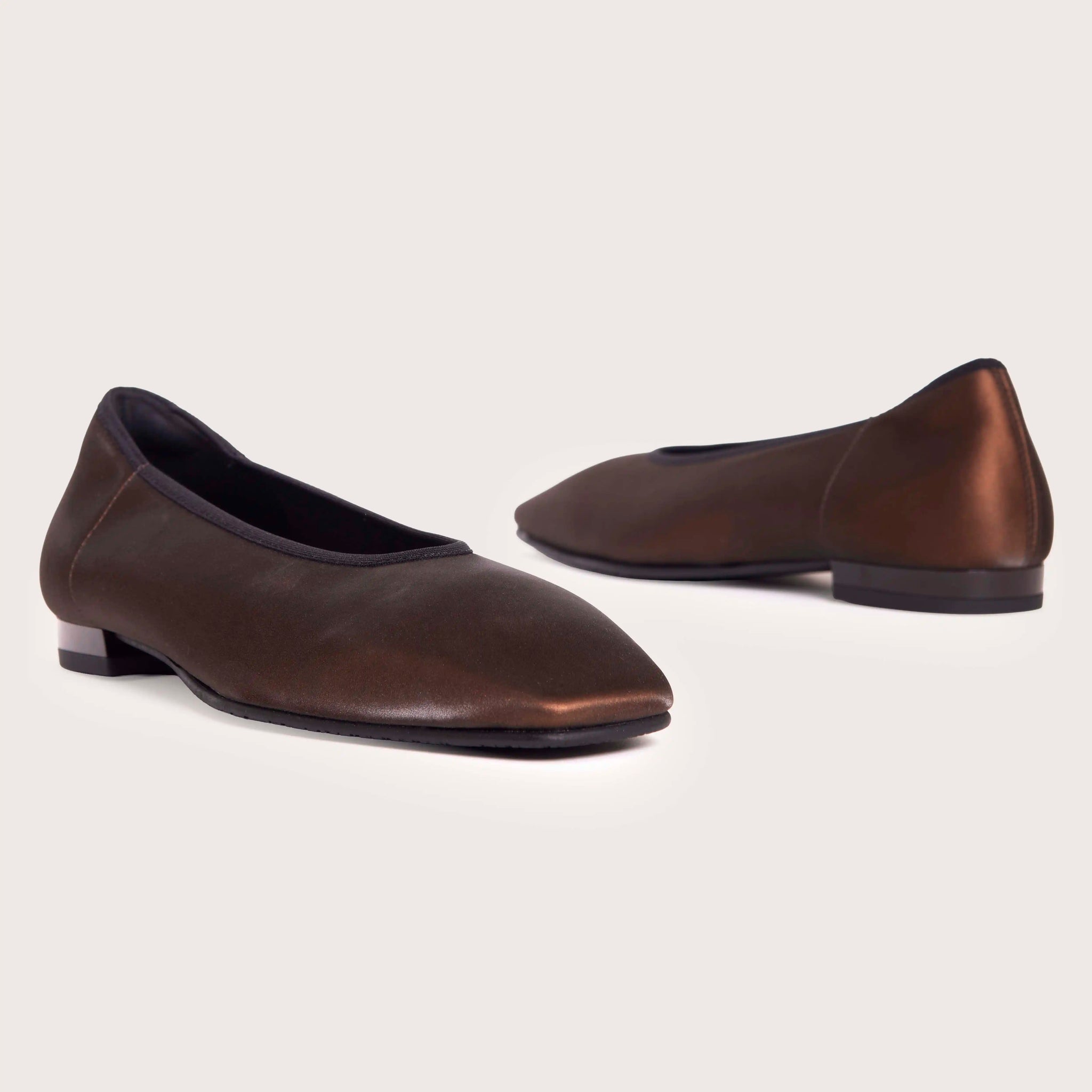 Discover warm sophistication with the Blair Bronze pointed flats – where rich metallic elegance meets effortless comfort. These stunning flats feature a lustrous bronze finish and sleek pointed toe that adds instant refinement to any outfit.