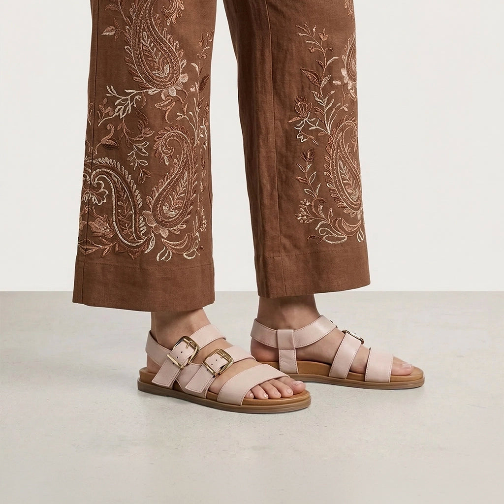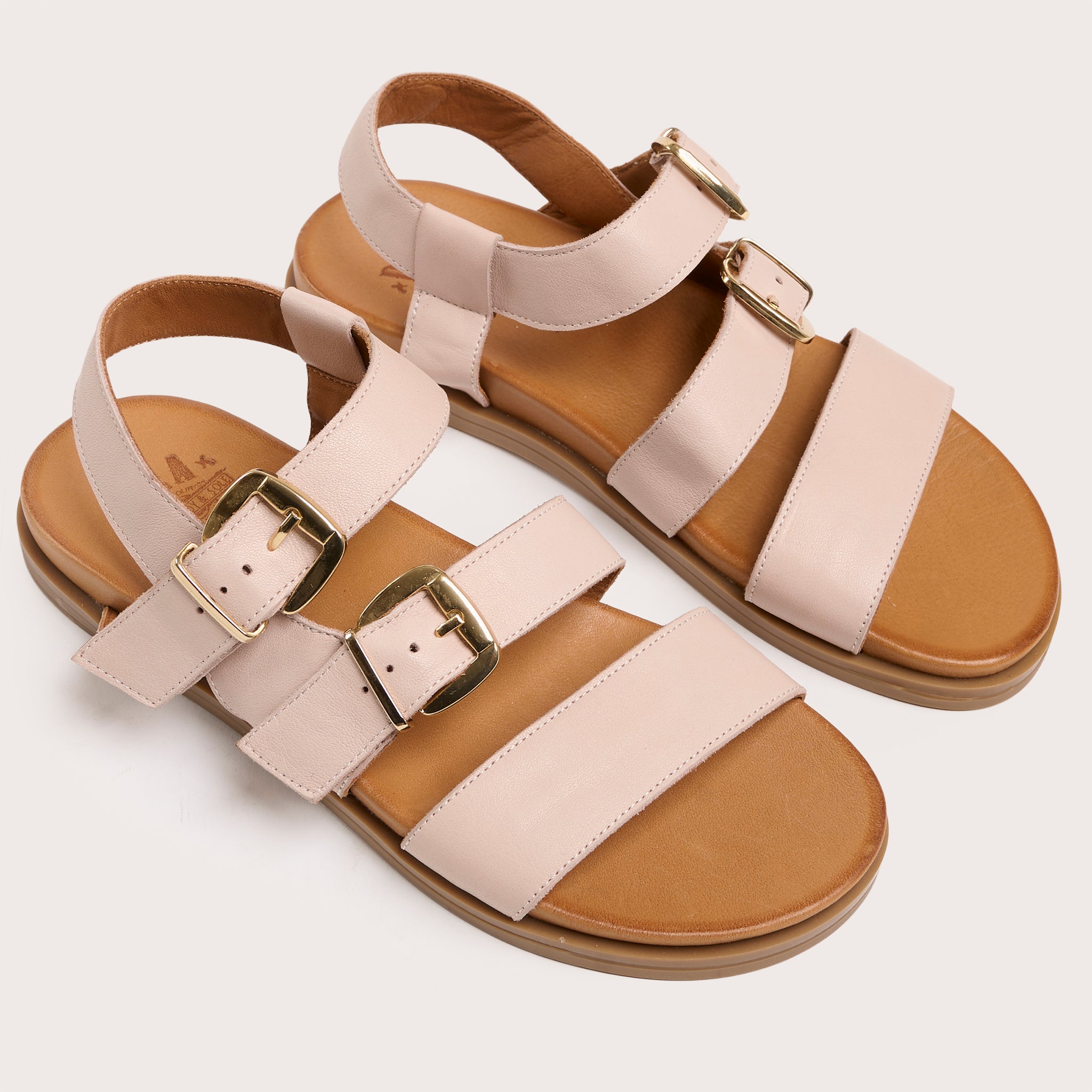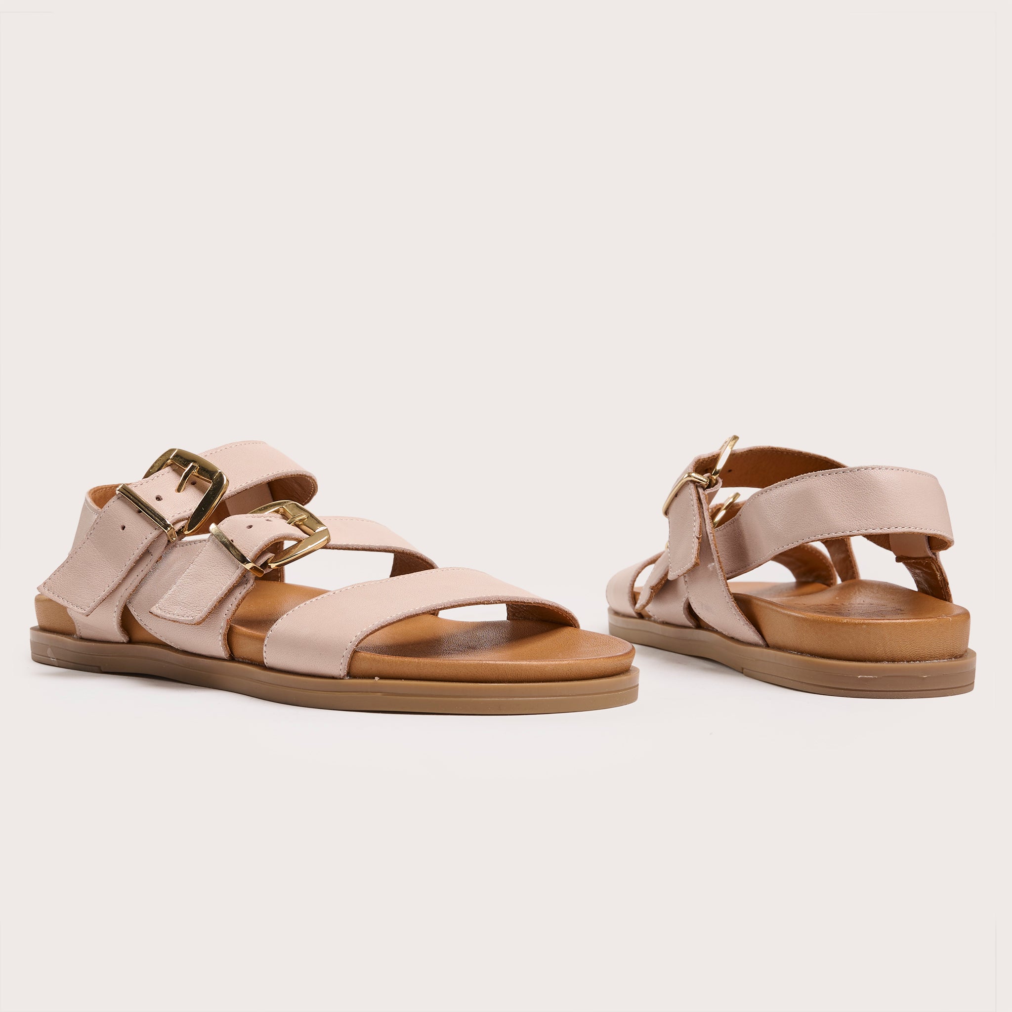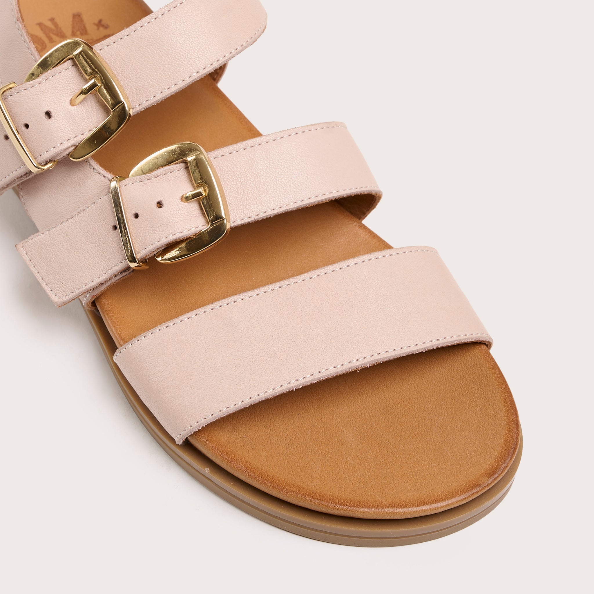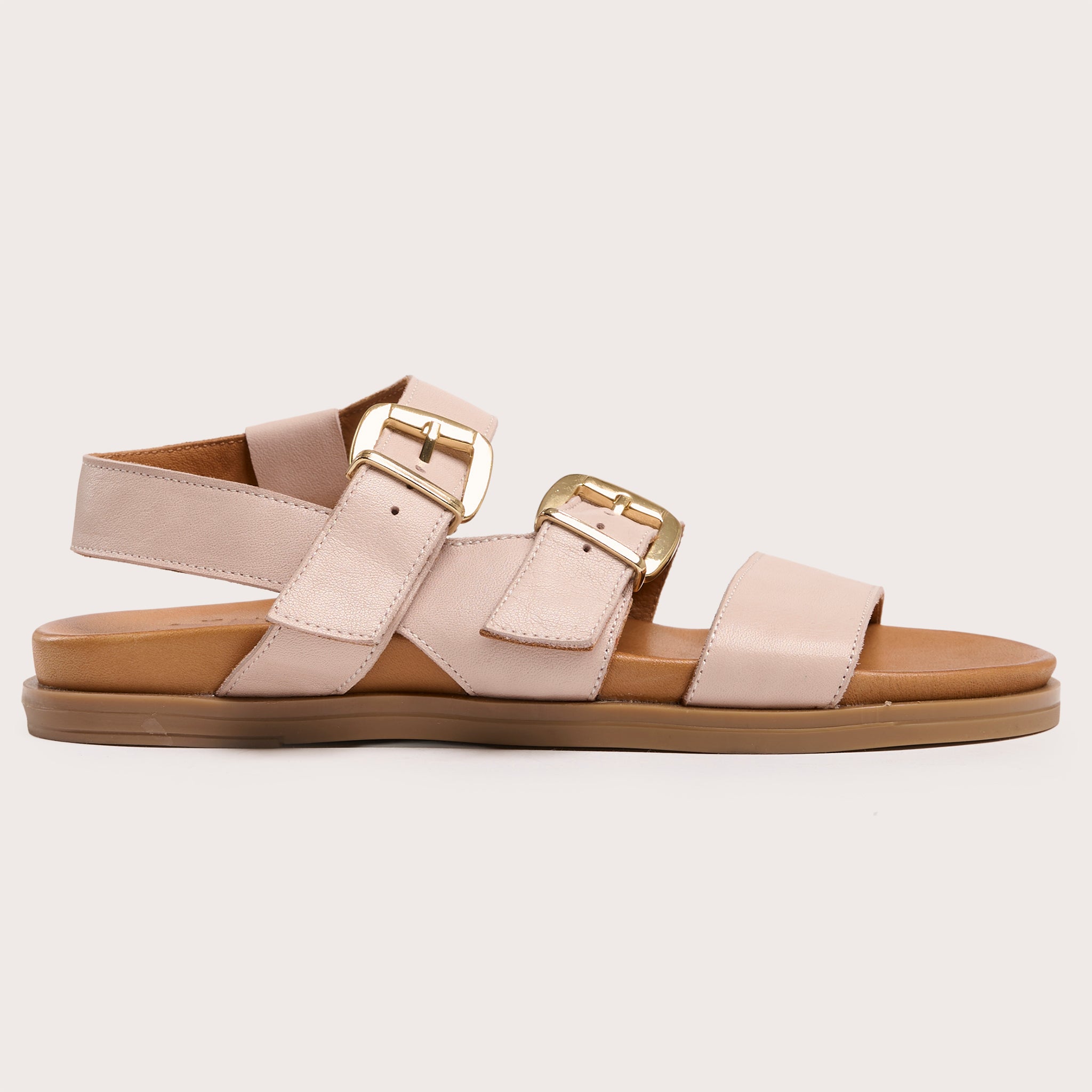 Step into modern comfort and understated elegance with the DNA Eastway Pink sandal. Crafted from smooth blush-pink leather, this sandal features wide straps and bold gold-tone buckles, creating a chic, contemporary silhouette. The dual adjustable straps across the foot and ankle ensure a secure, personalized fit, while the open-toe design keeps your feet cool and comfortable all day.