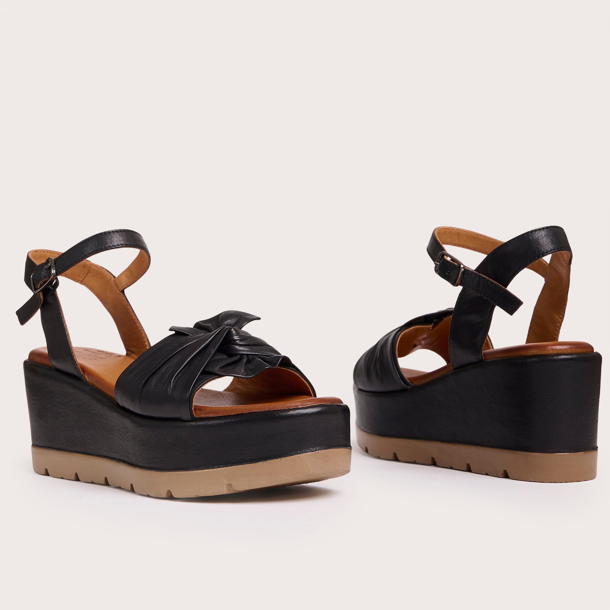 Get the Torry platform sandal, ASAP. This won't last as it's as comfortable as it is cute. A 2" platform complements the 3" heel, and the adjustable buckle ensures a proper fit. The beautiful flower knot on the upper is stunning and really adds to these sandals' charm.