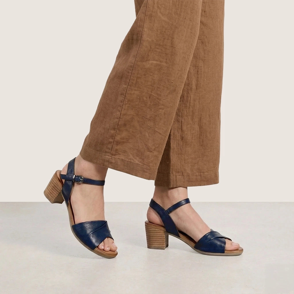 Complete your wardrobe with these comfortable mid-heel sandals. Astoria offers a padded footbed with beautiful folded leather details. The 1 1/2" heel height gives just enough height for all day wear.