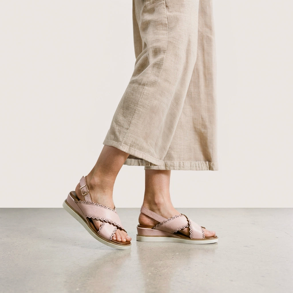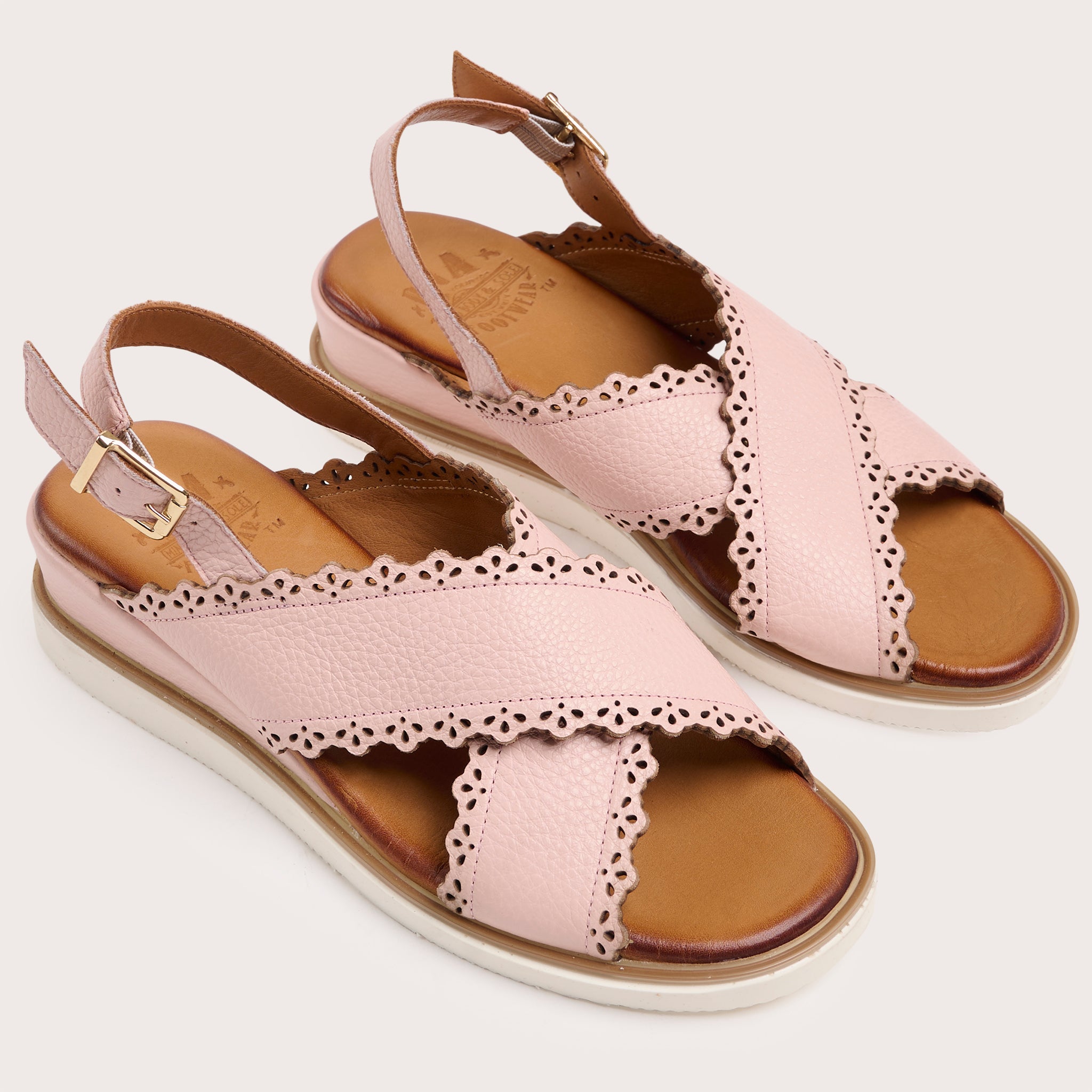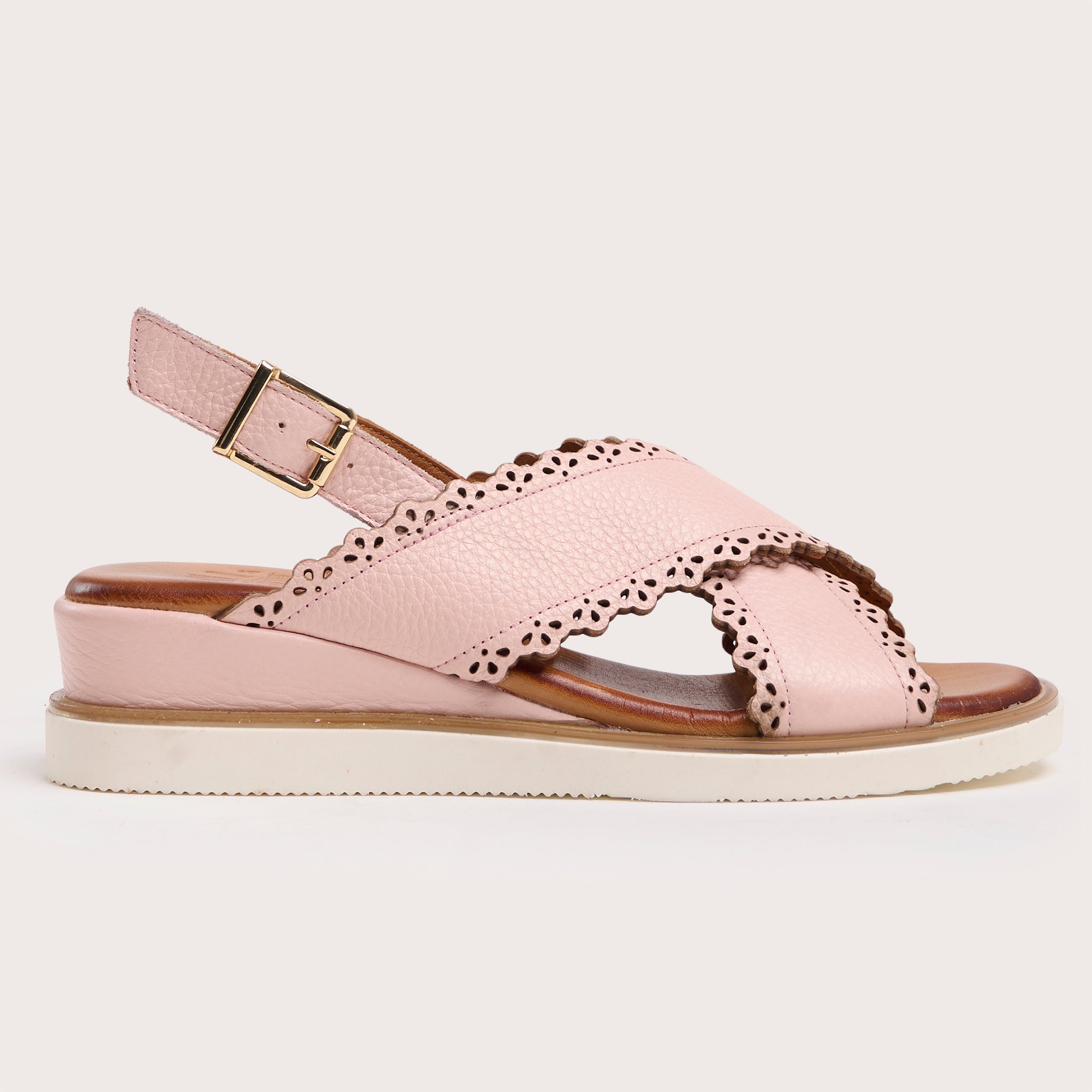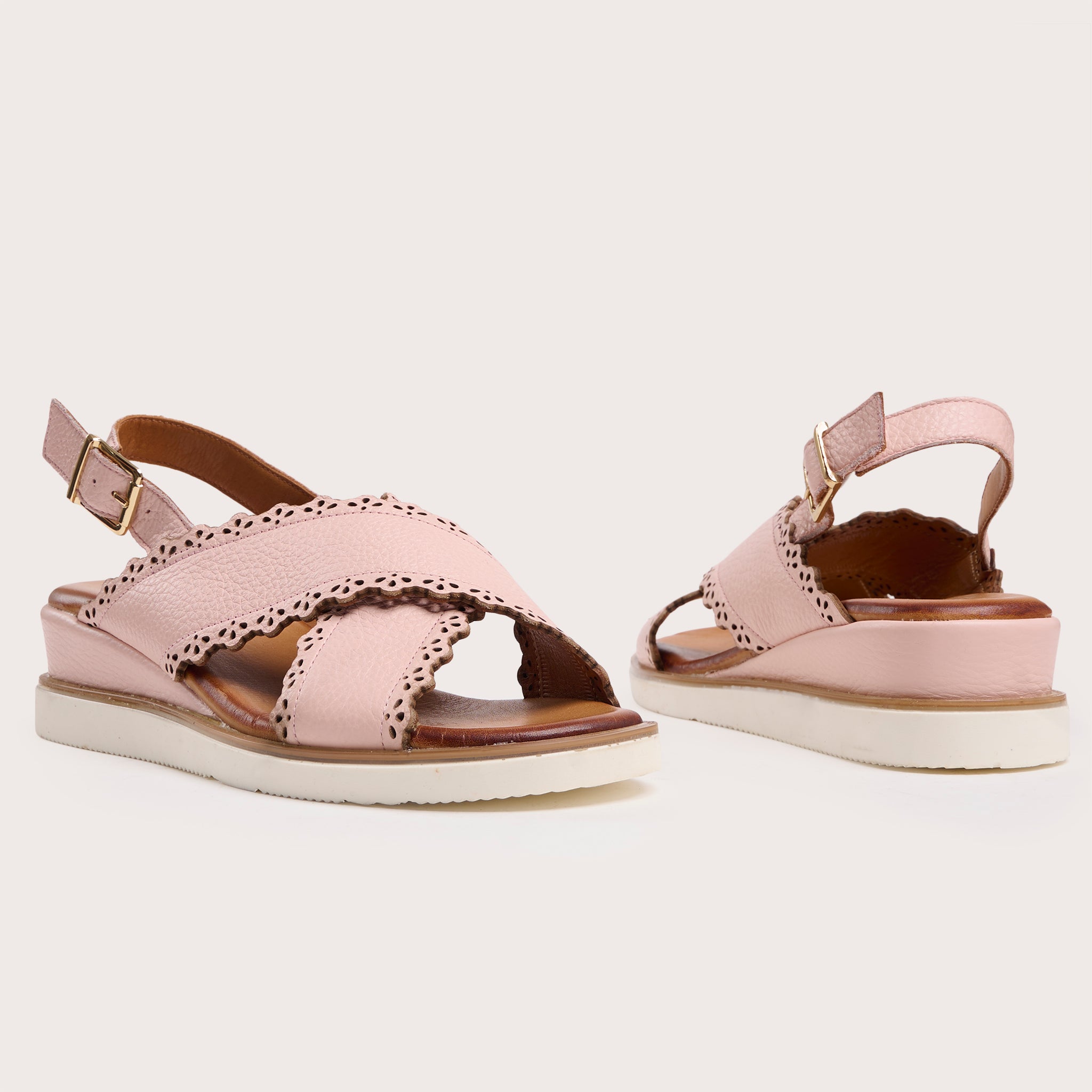 Bring a playful touch of elegance to your wardrobe with the DNA Footwear Green sandal. Featuring soft pink leather and delicate scalloped details, this sandal is made for those who love a feminine look without sacrificing comfort. Ideal for sunny days, brunch dates, or adding a pop of color to your favorite outfit.